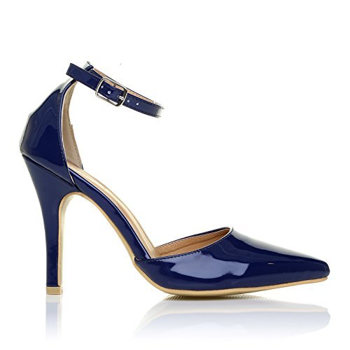 Best Seller! NEW YORK Navy Blue Patent Patent Ankle Strap Pointed High Heel Court Shoes Size UK 6 EU 39 Review